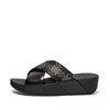 Fitflop Womens Slides - Lulu Silky-weave Cross - Black - 328-TVAOID