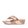 Fitflop Womens Slides - Lulu Silky-weave Cross - Coral Pink - 628-KRNJDP
